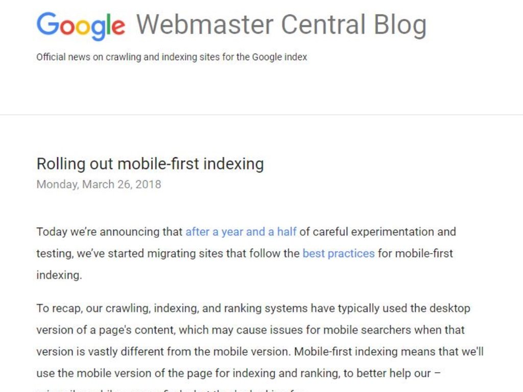 Najlepsza baza wiedzy o Google, czyli samo Google – na swoim blogu dzieli się wiadomościami dotyczącymi crawlowania, indeksowania i rankingu. Jest to również miejsce powiadamiania o tym, co wkrótce zamierza wprowadzić lub zaktualizować, tak jak na przykład miało to miejsce przy ogłoszeniu początku mobile-first indexing czy wprowadzeniu nowej wersji Search Console. Z bloga można dowiedzieć się również o nowościach wdrażanych na stronie SERP.