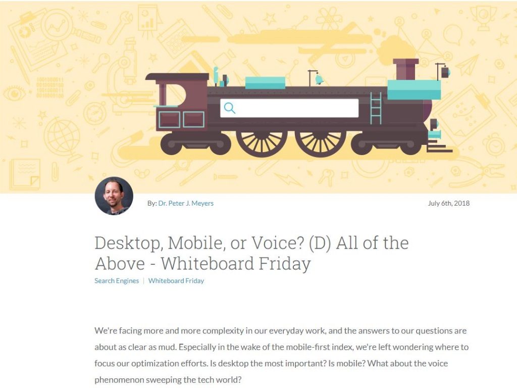 Na blogu pojawia się od czterech do pięciu artykułów tygodniowo. Największą popularnością cieszy się cykl „Whiteboard Friday”, o którym wspominaliśmy przy okazji najlepszych źródeł do nauki SEO. Tematy poruszane w klipach podsumowane są również w obszernych i szczegółowych wpisach na blogu.