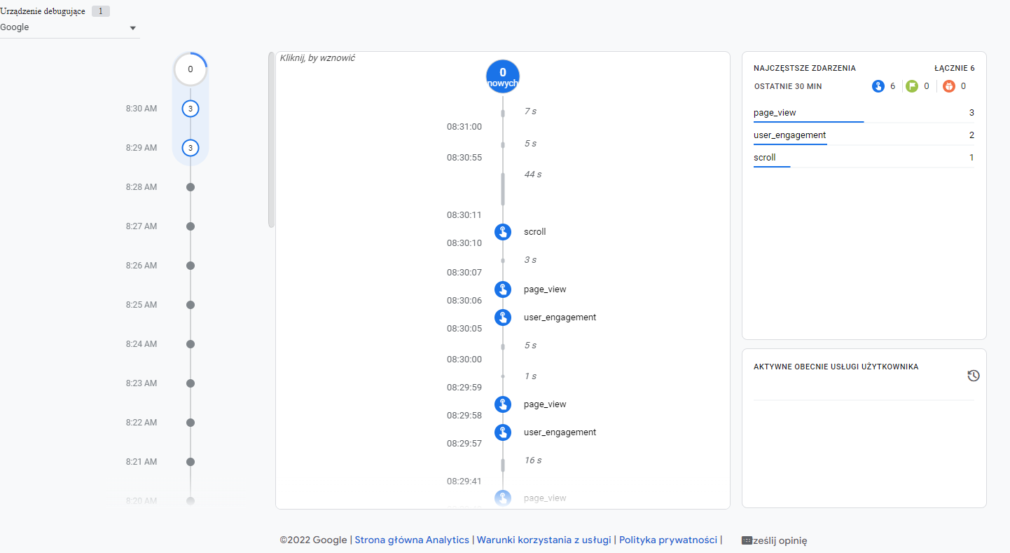 Google Analytics 4 oferuje Ci natomiast osobny moduł DebugView: