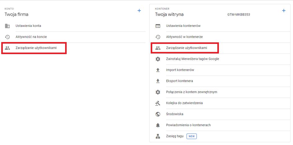Dodatkowo, jeśli współpracujesz z agencją, która zajmuje się analityką internetową w Twojej witrynie, powinna ona poprosić Cię o utworzenie konta i kontenera, a następnie Ty powinieneś dodać jej odpowiednie uprawnienia do dalszych działań. Jest to ważne, gdyż jeśli to agencja stworzyłaby kontener lub konto Google Tag Managera i byłaby jedynym administratorem, wówczas po zakończeniu z nią współpracy mogłaby zapomnieć o nadaniu Ci odpowiednich uprawnień i straciłbyś dostęp do narzędzia i całej konfiguracji.