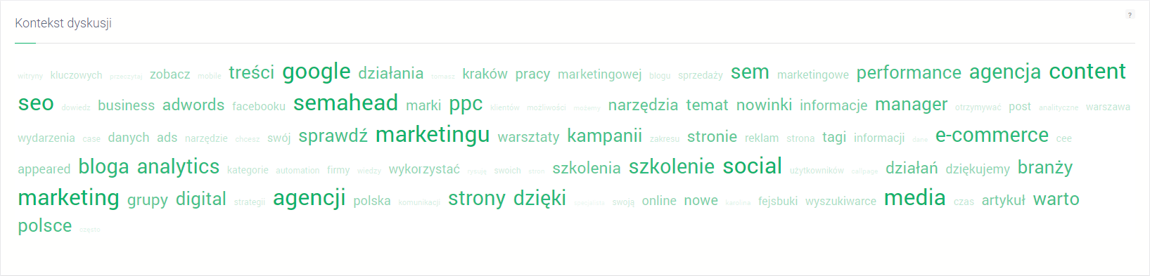 Poniżej przykład słów występujących z nazwą naszej agencji Semahead: