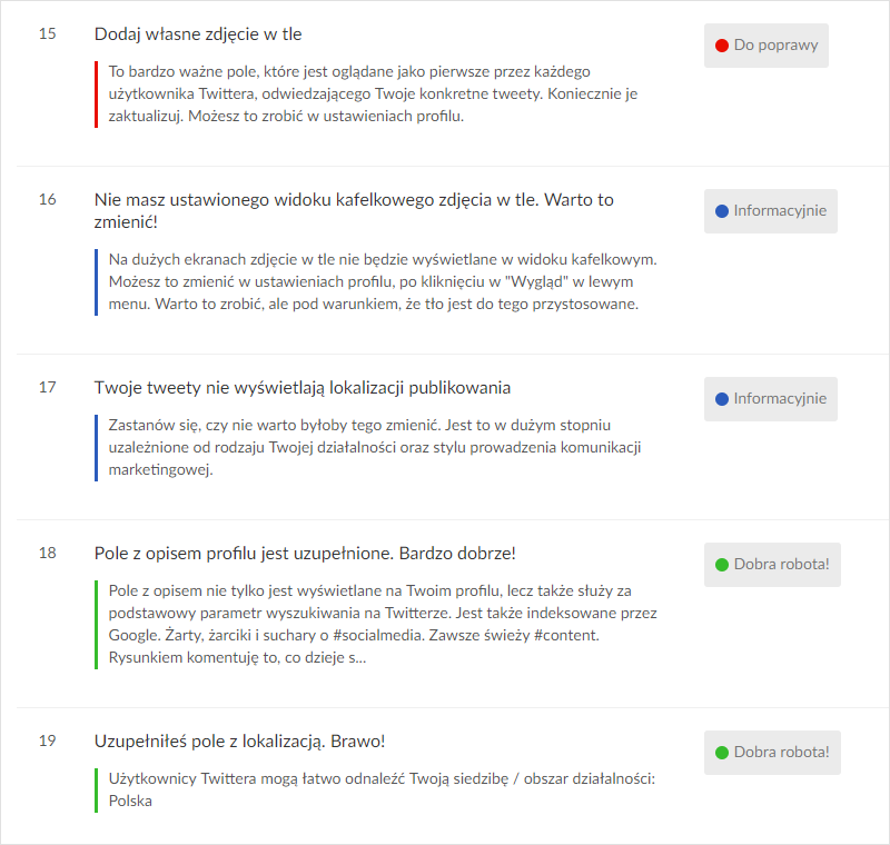 - Kompletność profili – czy Twoje profile społecznościowe są prawidłowo uzupełnione i zawierają aktualne dane?