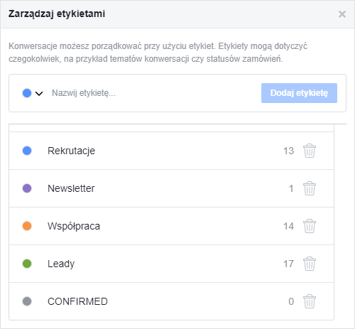 Przykład narzędzia i jego wykorzystanie: Facebook i Skrzynka odbiorcza => skorzystaj z etykiet i posegreguj za ich pomocą wiadomości prywatne od użytkowników (przykładowe kategorie: Reklamacje, Zwroty, Rabaty, Dostawa), a następnie oceń, czy wśród wiadomości, związanych ze zwrotami, widzisz jakiś wypracowany scenariusz rozmowy.