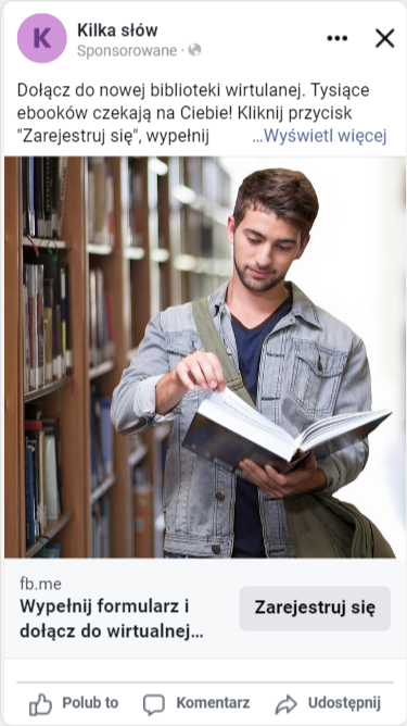 Przy tym celu reklama algorytmy Facebooka będą szukać użytkowników, którzy z największym prawdopodobieństwem doprowadzą do konwersji. Po kliknięciu reklama będzie odsyłała użytkowników na wskazany landing page.
