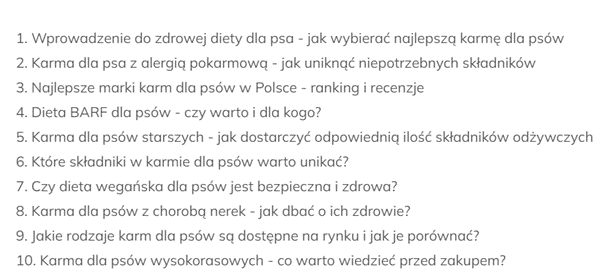 • Tematy artykułów powiązanych z frazami „karma dla psa” i „karma dla psów”