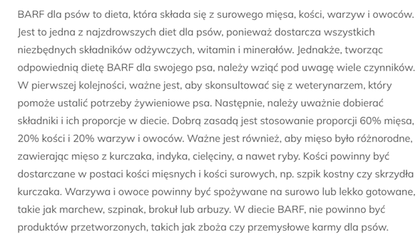 • Fragment artykułu na temat „Jak stworzyć odpowiednią dietę BARF dla swojego psa?”