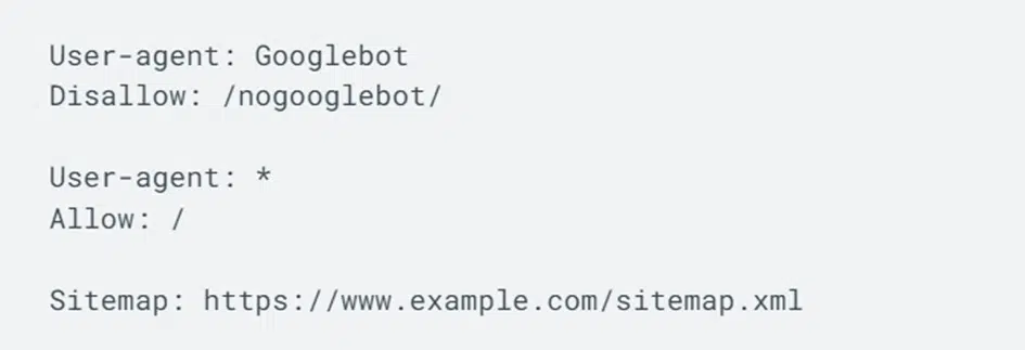 Narzędzia dla developerów od Google jako przykład prawidłowo skonstruowanego pliku robots.txt podają: