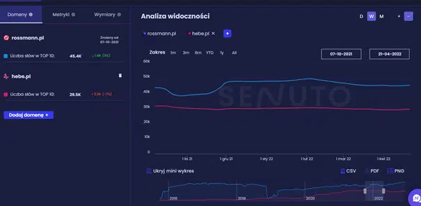Dlatego Senuto pozwala poprawnie określić konkurencję na podstawie wspólnych fraz kluczowych. Przykład dla Rossmann: