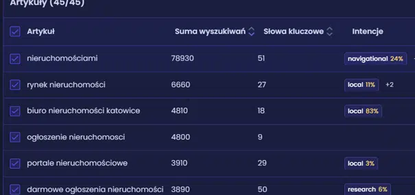 Czy content planner zawsze podsuwa ciekawe pomysły na treści? Niestety nie… Jednak może to i lepiej, gdyż jeśli sztuczna inteligencja będzie zbyt inteligentna to kim będziemy my specjaliści SEO? Poniżej proponowane artykuły dla strony z branży nieruchomości: