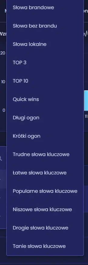 Co bardzo istotne, oprócz ważnej informacji, na jakie frazy dana domena jest widoczna w Google, to równie ważne jest to, że wyniki te można sortować i filtrować. Może wyłonić np. tylko „słowa brandowe” czyli takie, które zawierają nazwę brandu lub tylko frazy lokalne czyli takie z np. miastem. Inną opcją są np. quick wins, czyli frazy, które są poza pierwszą stroną wyników wyszukiwania, ale jednocześnie są na tyle blisko frazy, że można stosunkowo łatwo dostać się na tę pierwszą stronę.