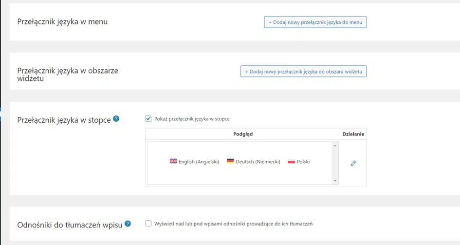 Jak widać, WPML daje możliwość dowolnej konfiguracji tego, jak i gdzie wyświetla się tłumaczenie i przełącznik wersji językowych.
